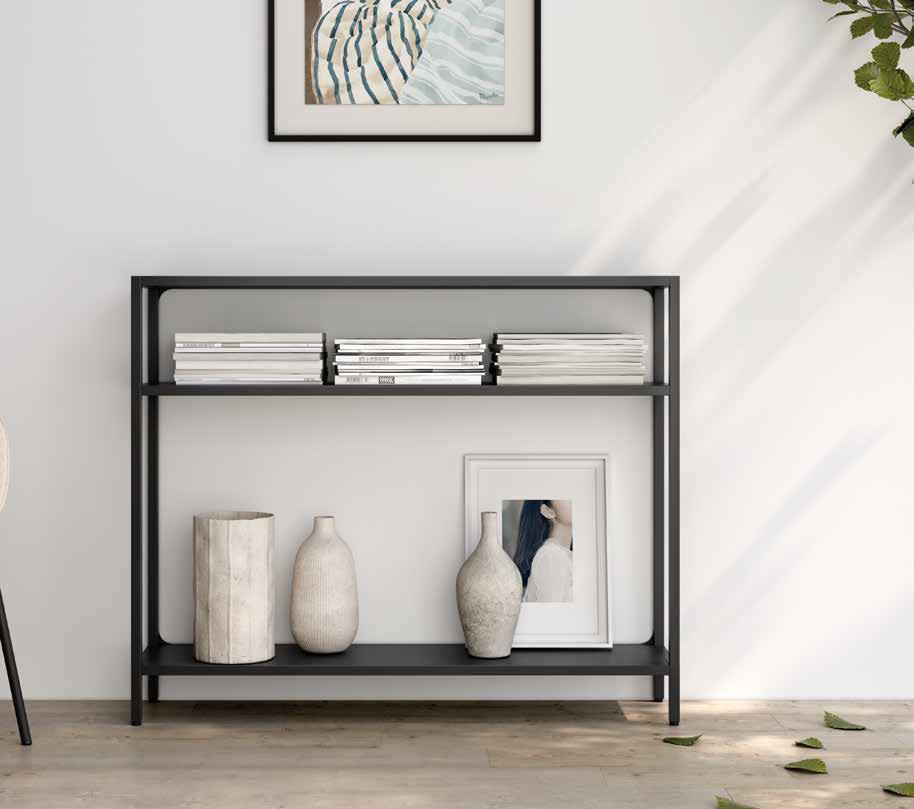 Estantería Recibidor Titania 110 x 90 con estructura metálica, disponible en crema y negro.