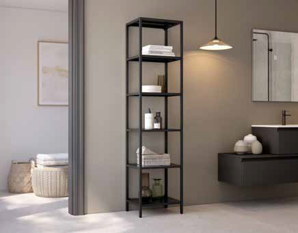 Estantería Titania 45 x 185 con estructura metálica, disponible en crema y negro.